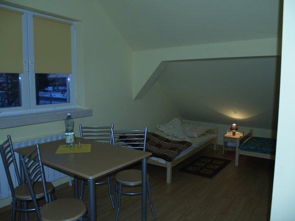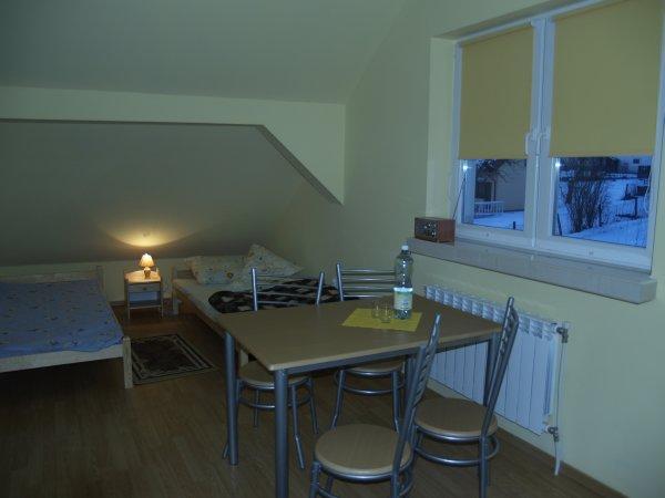 Oferujemy komfortowe pokoje z łazienkami, radiem oraz dostępem do pokoju wypoczynkowego z telewizją satelitarną i kominkiem. Do dyspozycji gości jest w pełni wyposażona kuchnia z pralką automatyczną. Na posesji znajduje się zadaszony grill, miejsce na ognisko, plac zabaw dla dzieci oraz bezpieczny parking.