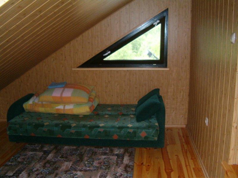 Na piętrze znajdują się trzy oddzielne sypialnie: dwie z łóżkami małżeńskimi oraz jedna z dwiema wersalkami. Jedna z sypialni posiada balkon, a w każdej z nich są szafki na ubrania. Zapewniamy również pościel.