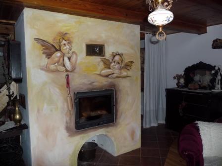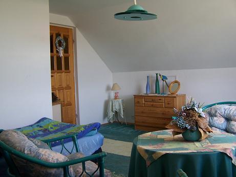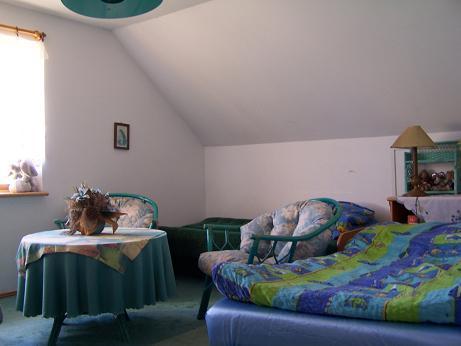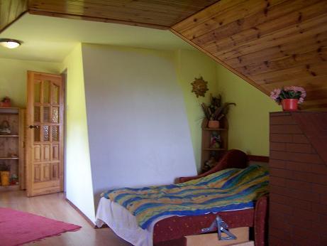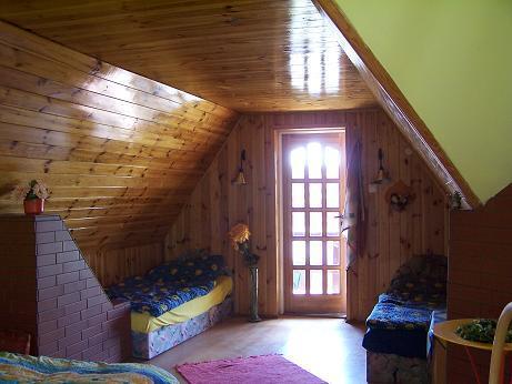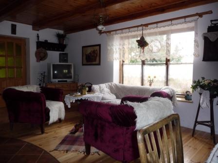 Wnętrze domu oferuje przytulny salon z kominkiem, idealny na wieczory w ciepłej atmosferze. Kuchnia jest w pełni wyposażona, co umożliwia przygotowanie pysznych posiłków. Na piętrze znajdują się trzy sypialnie: jedna z balkonem dla czterech osób, druga również dla czterech osób, oraz trzecia dla dwóch osób. Goście mają również do dyspozycji łazienkę i taras, z którego rozciągają się piękne widoki.