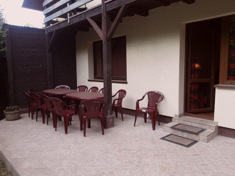 Dom dla 10 osób: 4 sypialnie (3+3+2+2 os.), pokój dzienny z TV Sat i kominkiem, kuchnia, jadalnia, WC i kabina prysznicowa + WC na piętrze. Teren ogrodzony. Ogródek z murowanym grillem. Miejsce parkingowe na 2-3 samochody. Do morza 900 m. Do najbliższych sklepów, punktów gastronomicznych, kortu tenisowego i basenu 100m. Zapraszamy!