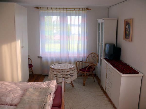 – **Komfortowe zakwaterowanie**: Oferujemy wynajem całej góry domu z oddzielnym wejściem. Do dyspozycji macie trzy oddzielne pokoje, łazienkę z wanną, prysznic oraz dodatkowe WC. W salonie znajdziecie telewizor z anteną satelitarną.