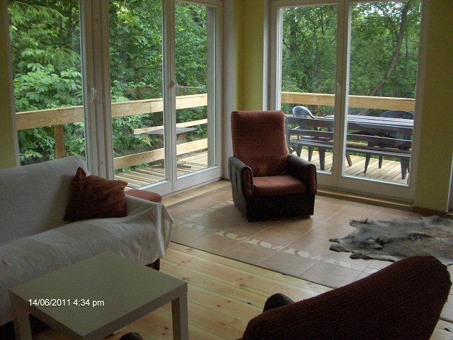 Dodatkowo, w naszym domu oferujemy duży, wygodny pokój dla 2-3 osób, wyposażony w małżeńskie łóżko i rozkładaną kanapę. Pokój posiada przestronny balkon z stołem, fotelami i hamakiem oraz dodatkowy mały pokój, idealny dla dziecka. W łazience znajdziesz lodówkę, czajnik elektryczny i podstawowe naczynia.