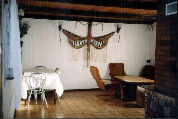– Salon z kominkiem, zestawem mebli, telewizją satelitarną (Polsat Cyfrowy), kinem domowym i radiem,