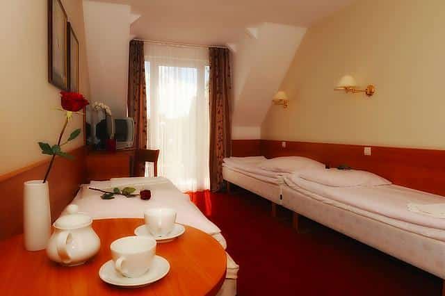 Serdecznie zapraszamy do naszej kawiarni, która znajduje się na terenie ośrodka. Oferujemy 93 pokoje, w sumie 220 miejsc. Nasze pokoje mają różne rozmiary – od jednoosobowych do czteroosobowych, a także studia dla dwóch dorosłych i dwójki dzieci. Wszystkie pokoje posiadają łazienki z prysznicem, telewizory, radia i są komfortowo umeblowane, część z nich ma również balkony.
