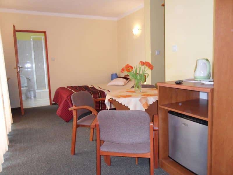 Gwarantujemy przyjazną atmosferę oraz profesjonalną obsługę, które sprawią, że poczujesz się u nas jak w domu. Na terenie obiektu znajduje się jadalnia, gdzie codziennie serwujemy dwa smaczne posiłki. Dla Twojej wygody oferujemy również dostęp do internetu oraz strzeżony parking.