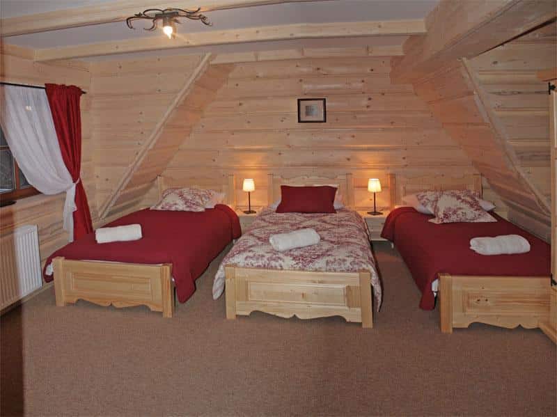 – Pokój numer 3 (na piętrze): trzy łóżka pojedyncze, połączony z pokojem numer 4,