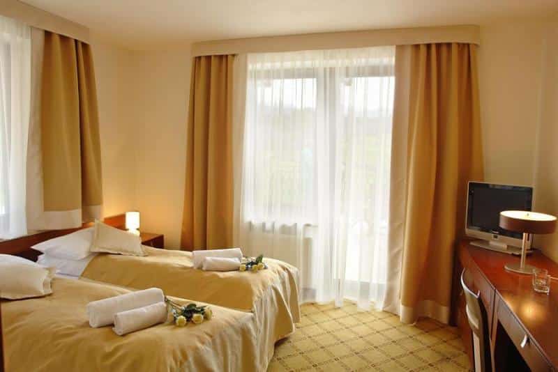 Każdy pokój posiada balkon oraz jest wyposażony w telewizor, internet i lodówkę z minibarkiem.