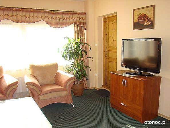 Z okien hotelu roztacza się piękny widok. Z jednej strony można podziwiać malowniczą panoramę Tatr, z Giewontem na czele, która zachwyca serca turystów. Z drugiej strony widoczne są stoki Gubałówki oraz Polana Szymoszkowa, gdzie znajdują się nowoczesne wyciągi narciarskie dla miłośników sportów zimowych. To idealne miejsce dla osób, które chcą cieszyć się zarówno pięknem gór, jak i aktywnością na śniegu.