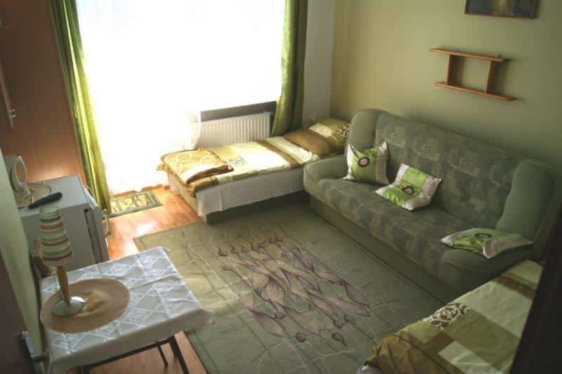 – Telewizor, lodówkę, czajnik bezprzewodowy, koc na plażę i parawan w każdym pokoju,