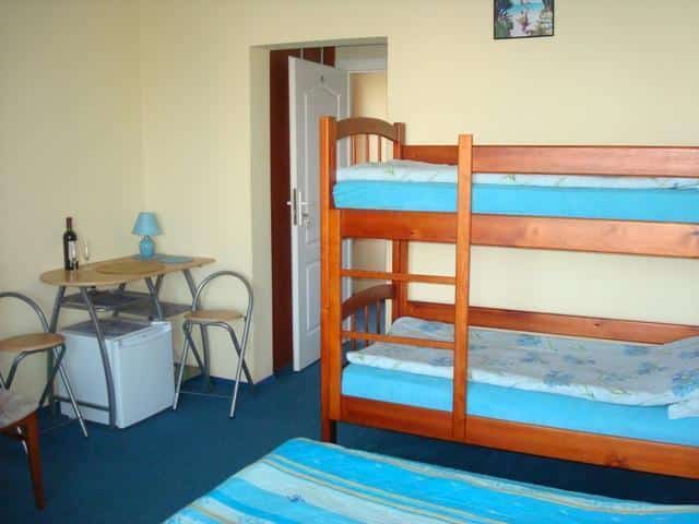 – W pokojach 3-osobowych dodatkowe łóżko pojedyncze, a w pokojach 4-osobowych solidne łóżko piętrowe z barierkami zabezpieczającymi.