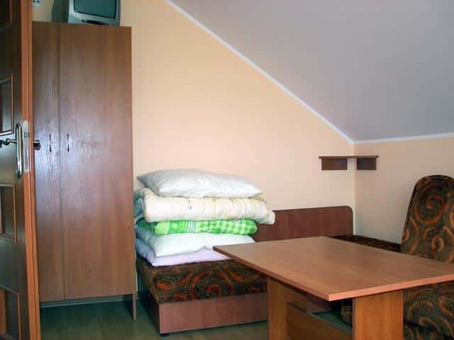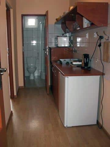 Każde z naszych pomieszczeń jest w pełni wyposażone, aby zapewnić komfortowy pobyt. Znajdziesz tu łazienkę z WC, aneks kuchenny z pełnym wyposażeniem, telewizor, lodówkę, kuchenkę elektryczną, mikrofalówkę oraz komplet naczyń i sztućców.