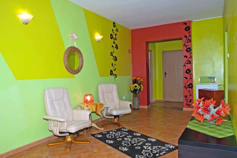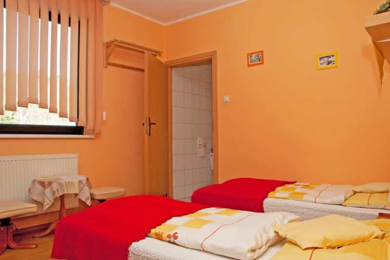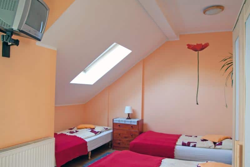 – 20 przytulnych pokoi (2- lub 3-osobowych), które pomieszczą łącznie 50 osób. Każdy pokój jest wyposażony w pełny węzeł sanitarny, telewizję satelitarną oraz bezprzewodowy internet (WI-FI).