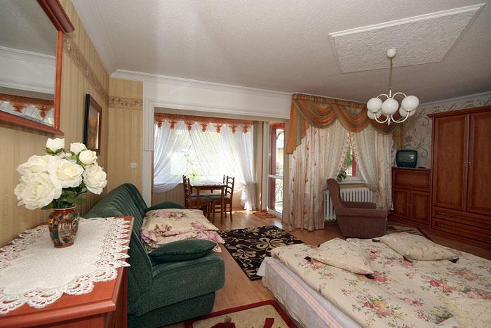 – Apartament dla 4-6 osób, który składa się z pokoju dziennego, sypialni, aneksu kuchennego i łazienki, a także dwóch balkonów.