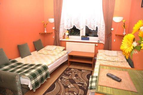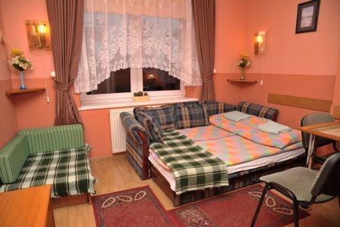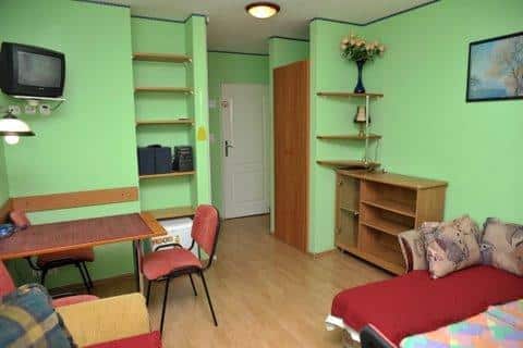 – Pokoje trzy- i czteroosobowe z pełnym węzłem sanitarnym, telewizorem satelitarnym, radiem, odtwarzaczem CD, telefonem oraz lodówką.