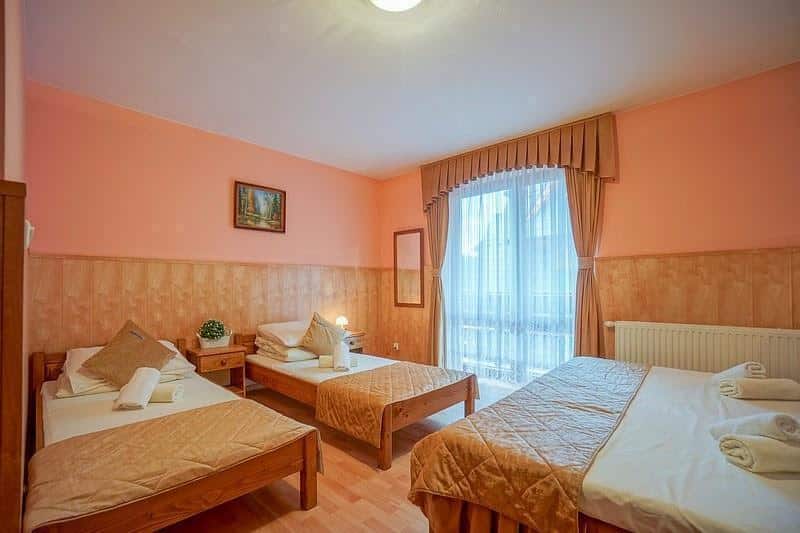 Oferujemy komfortowe pokoje 2-, 3- i 4-osobowe, wyposażone w łazienki, WC oraz czajniki bezprzewodowe. Niektóre z pokoi posiadają balkony, z których można podziwiać malownicze widoki. Łącznie dysponujemy 100 miejscami noclegowymi, co czyni nas doskonałym wyborem na grupowe wyjazdy.