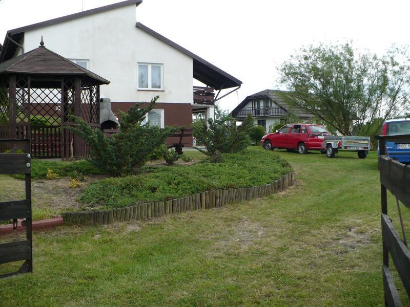 Na terenie posesji znajdziesz duży ogród z drewnianą altaną i ławkami, gdzie możesz odpocząć i cieszyć się świeżym powietrzem. Dodatkową atrakcją jest kominek do grillowania oraz trzyosobowa huśtawka, które zapewnią rozrywkę dla całej rodziny. Na miejscu dostępne są także miejsca parkingowe dla 2-3 samochodów.