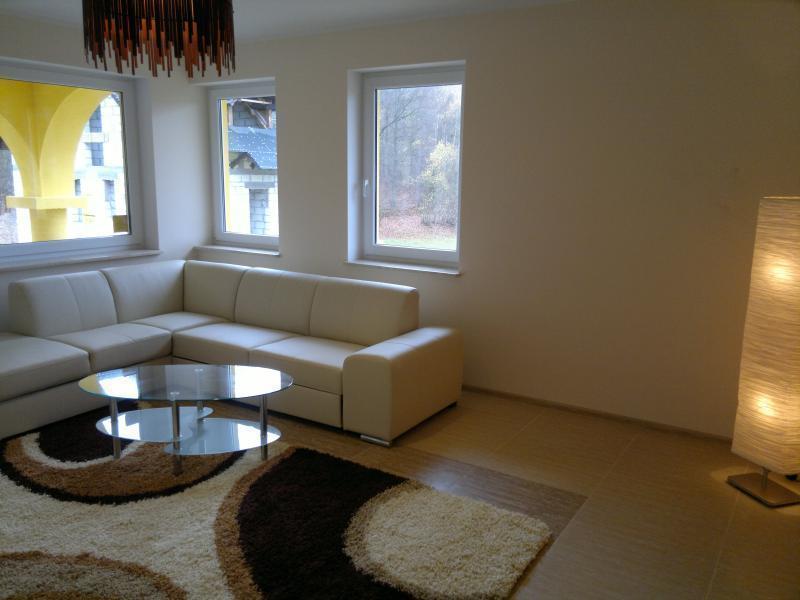– W pełni wyposażony salon z telewizorem i możliwością spania