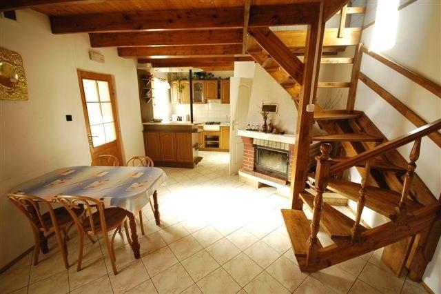 Domek całoroczny “Chmajówka” to doskonałe miejsce na relaksujący wypoczynek. W pełni wyposażona kuchnia pozwala na przygotowywanie pysznych posiłków, a przytulny salon z kominkiem zapewnia idealne warunki do odpoczynku i cieszenia się chwilą spokoju. Na piętrze znajdują się dwie sypialnie, które zapewniają wygodny sen. Dla większych grup istnieje możliwość wynajęcia pokoi gościnnych w domu gospodarzy, które są w pełni wyposażone, z łazienkami i aneksem kuchennym.