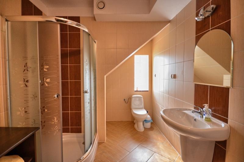 Na parterze znajduje się również łazienka z prysznicem, która zapewnia pełen komfort.
