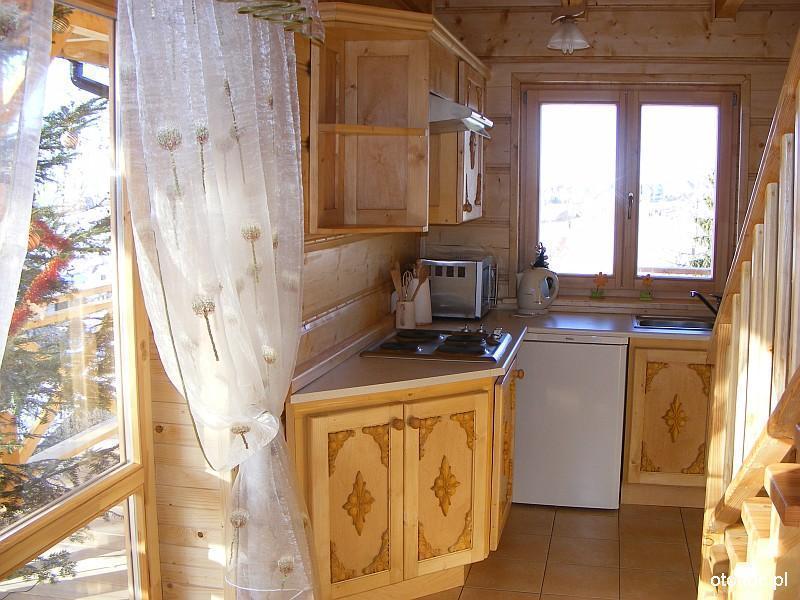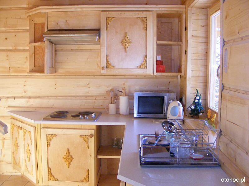 – W pełni wyposażony aneks kuchenny (lodówka, płyta elektryczna, czajnik elektryczny, pełen zestaw naczyń i sztućców)