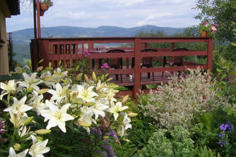 Z kuchni można wyjść na przestronny taras, a jeden z pokoi dysponuje dużym balkonem, z którego rozciąga się zapierający dech w piersiach widok. Dodatkowo, pod balkonem przygotowano miejsce do grillowania lub rozpalenia ogniska, co sprzyja wieczornym spotkaniom na świeżym powietrzu. Goście mają także dostęp do internetu (WiFi).