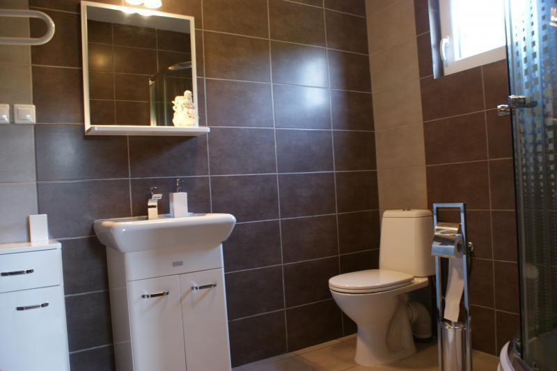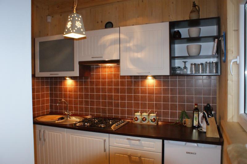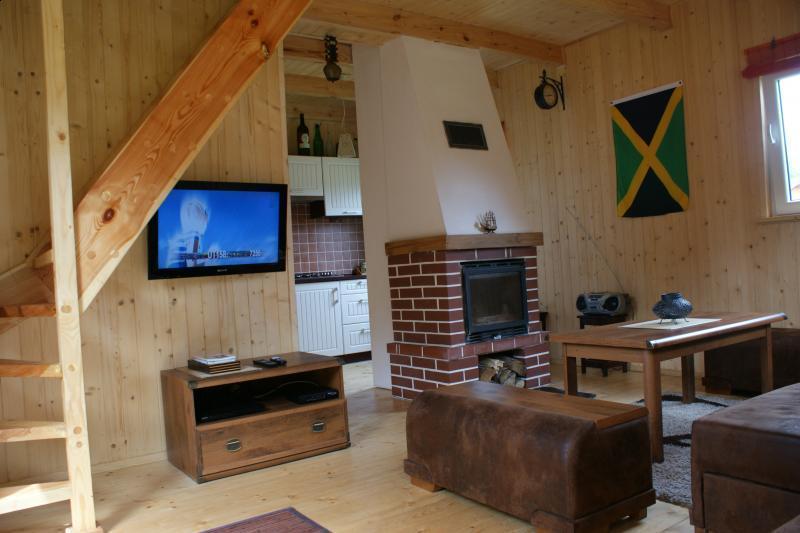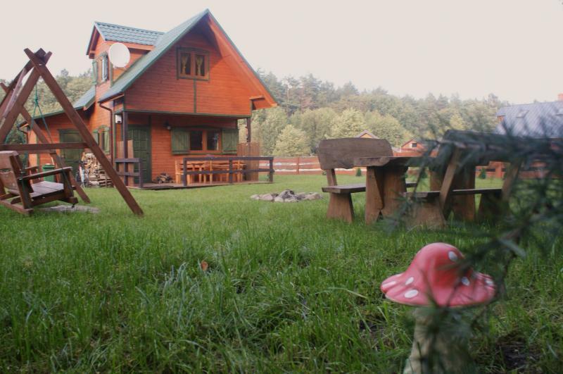 Domek znajduje się na ogrodzonej działce o powierzchni 560 m², co zapewnia prywatność i bezpieczeństwo. Dzięki kominkowi, ciepło rozprowadzane jest do wszystkich pomieszczeń, a ciepła woda pochodzi z bojlera, co gwarantuje komfortowy pobyt o każdej porze roku.