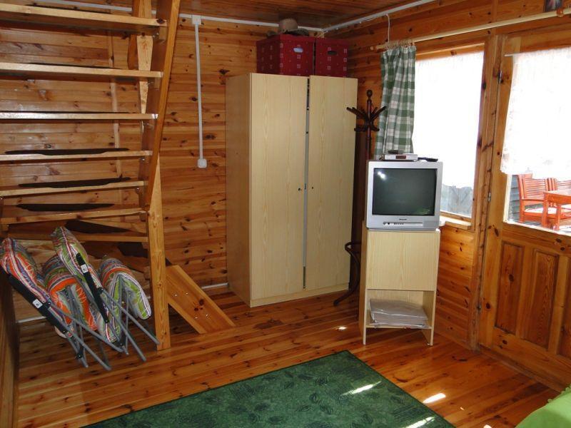 Domek jest piętrowy, co zapewnia dodatkową przestrzeń do wypoczynku. Na parterze znajdziesz: