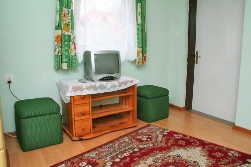 Na sąsiedniej posesji znajduje się stołówka, gdzie serwowane są pyszne domowe obiady. Wokół domku rozpościera się przestrzeń do zabaw dla dzieci oraz zadaszona mini-altanka, idealna na grilla na świeżym powietrzu.