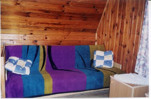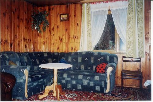 Domek jest ogrzewany kominkiem z systemem rozprowadzenia ciepła, co zapewnia komfort nawet w chłodniejsze dni. Pomieści od 7 do 9 osób, oferując łącznie 3 pojedyncze i 4 podwójne miejsca do spania. Na ogrodzonej działce o powierzchni 7 arów znajdują się dwa garaże.