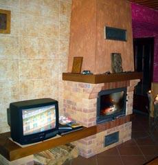 – Salon z kominkiem i telewizorem,