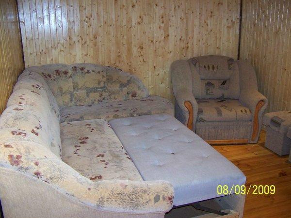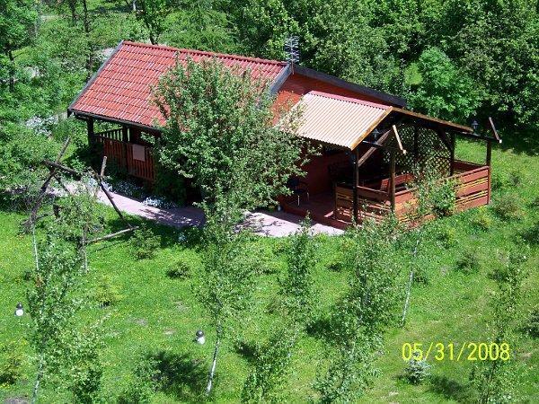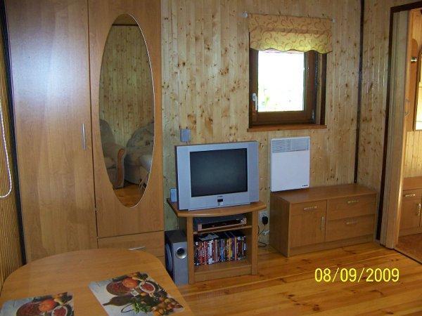 Domek drewniany wielosezonowy z tarasem zadaszonym i dużym tarasem słonecznym. Dwupokojowy, 6-osobowy, cena do uzgodnienia. Wysoki standard.