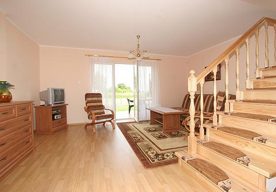 – Przestronny pokój dzienny z wyjściem na taras, wyposażony w komplet wypoczynkowy, który może służyć jako dodatkowe miejsce do spania dla dwóch osób, telewizor z tunerem telewizji cyfrowej oraz radio z odtwarzaczem CD,
