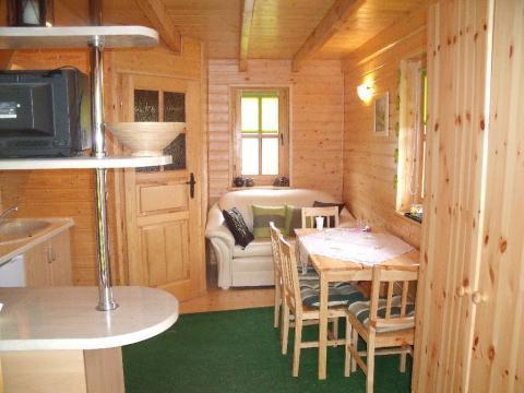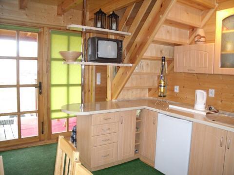 – Przestronny salon z wygodną sofą, stołem, krzesłami oraz telewizorem. W aneksie kuchennym znajdą Państwo wszystko, co potrzebne: lodówkę, kuchenkę elektryczną, mikrofalówkę oraz komplet naczyń i sztućców.