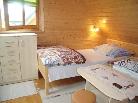 – Przytulną sypialnię z trzema łóżkami: jednym dwuosobowym i dwoma jednoosobowymi, a także szafą i stolikiem.