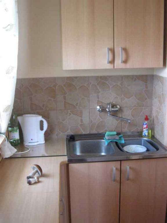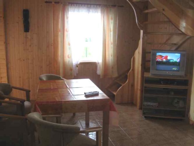 – Parter: salon z telewizorem, gdzie mogą spać 2 osoby, w pełni wyposażoną kuchnię (lodówka, kuchenka, czajnik bezprzewodowy, kuchenka mikrofalowa, komplet naczyń) oraz łazienkę z kabiną prysznicową, umywalką i toaletą.