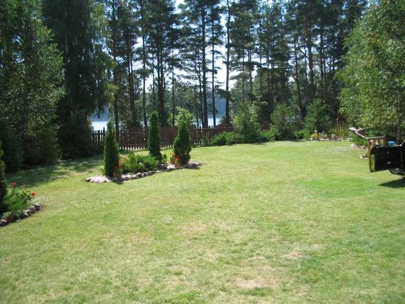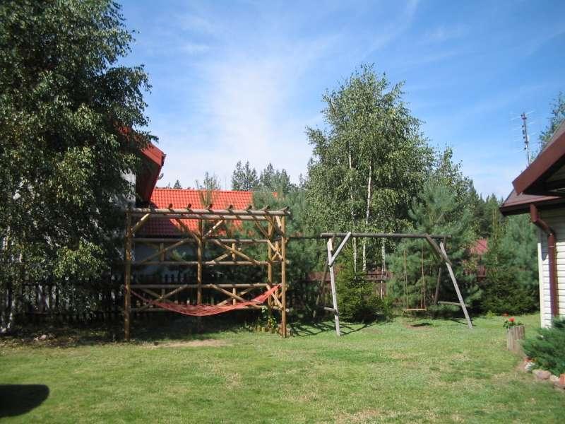Teren wokół domu jest ogrodzony i zagospodarowany. Znajduje się tam miejsce na wypoczynek, ognisko oraz plac zabaw dla dzieci.