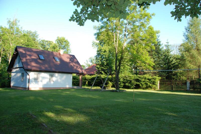 – Boisko do siatkówki oraz duża przestrzeń przed domkiem.