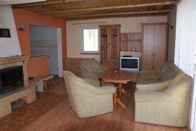 Na parterze znajduje się przestronny salon z rozkładaną sofą dla dwóch osób oraz telewizorem z TV-SAT. Duża łazienka wyposażona jest w wannę i toaletę. Kuchnia z jadalnią oferuje pełne wyposażenie, w tym kuchenkę gazową z piekarnikiem, czajnik elektryczny, mikrofalówkę i lodówkę. Ciepłą wodę zapewnia ogrzewacz przepływowy, a przytulne ciepło – kominek. Możliwość przyjazdu ze zwierzętami domowymi jest do uzgodnienia.