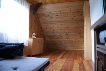 Dom oferuje komfortowe warunki dla maksymalnie 9 osób, z możliwością uzgodnienia większej liczby gości. Na poddaszu znajdują się dwie sypialnie: jedna z trzema łóżkami dwuosobowymi, druga z jednym łóżkiem jednoosobowym. Dodatkowo, do dyspozycji jest dwuosobowy materac.