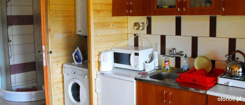 – aneks kuchenny z mikrofalówką, kuchenką, pralką i lodówką.