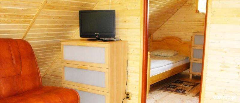 Domek oferuje komfortowe zakwaterowanie dla maksymalnie 9 osób. W jego wnętrzu znajdą Państwo przestronny salon z kominkiem i dwoma miejscami do spania, przytulny aneks kuchenny oraz dwie sypialnie (jedna 2-osobowa, druga 3-osobowa). Dodatkowo, antresola zapewnia kolejne dwa miejsca do spania. Łazienka jest w pełni wyposażona, a duży taras stanowi idealne miejsce na relaks i spożywanie posiłków na świeżym powietrzu.