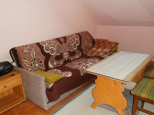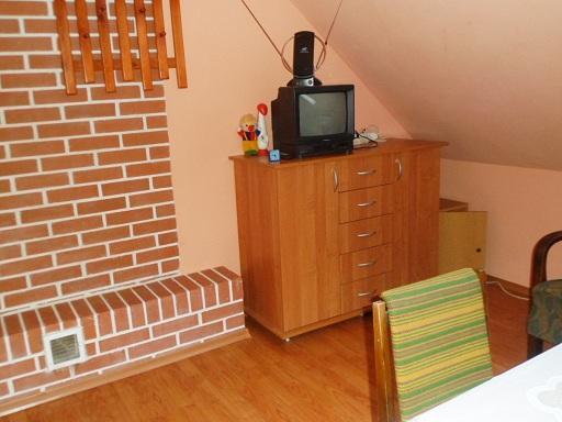 Wnętrze domku składa się z trzech przytulnych sypialni na piętrze, każda wyposażona w telewizor. Na tym poziomie znajduje się również łazienka oraz balkon, który otacza budynek z trzech stron, zapewniając wspaniałe widoki. Na parterze czeka na Państwa przestronny salon z kominkiem i telewizorem z cyfrową telewizją naziemną, a także dwie rozkładane wersalki, które mogą pomieścić dodatkowych gości. W pełni wyposażona kuchnia pozwoli przygotować ulubione posiłki. Dwie łazienki zapewniają wygodę i komfort podczas pobytu.