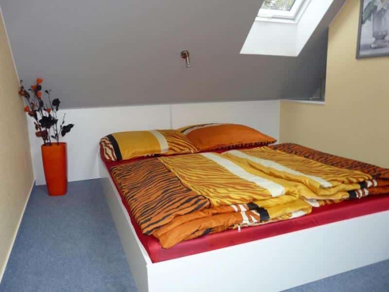 – Dwie sypialnie na piętrze: jedna z łóżkiem małżeńskim i telewizorem SAT-TV, druga z dwoma łóżkami pojedynczymi.