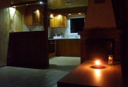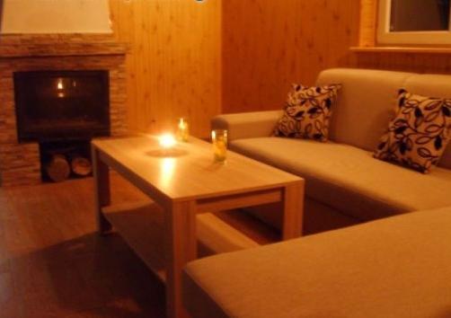 – Salon z kominkiem, w którym znajduje się rozkładana sofa, mogąca pomieścić dodatkowo dwie osoby.