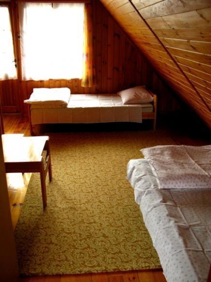 – Piętro: dwie oddzielne sypialnie (jedna 3-4 osobowa, druga 2-osobowa) oraz jedna przejściowa sypialnia (1 osoba), a także balkon.