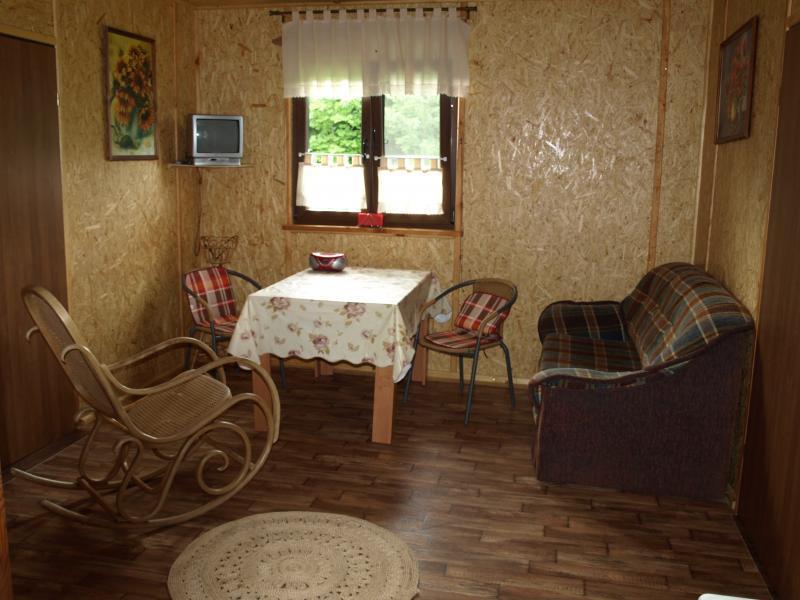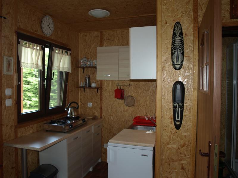 W domku znajdują się dwa komfortowe pokoje, łazienka oraz w pełni wyposażony aneks kuchenny, co pozwala na samodzielne przygotowywanie posiłków. Na terenie posesji znajduje się miejsce na ognisko, idealne na wieczorne spotkania przy blasku płomieni. Dla entuzjastów wędkowania dostępny jest pomost oraz łódka, z których można korzystać do woli.