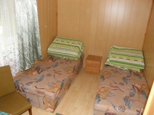 Domek pomieści 5-6 osób i oferuje komfortowe warunki do wypoczynku. W jego wnętrzu znajdują się dwie przytulne sypialnie, w pełni wyposażona kuchnia, łazienka z prysznicem i osobna toaleta. Dla miłośników wieczornych seansów przygotowaliśmy telewizor.