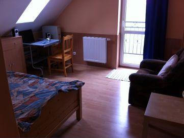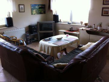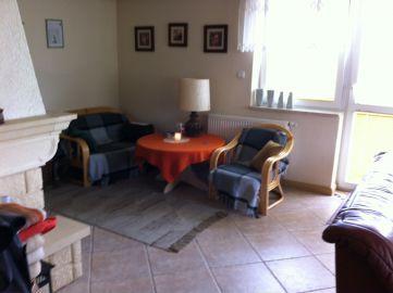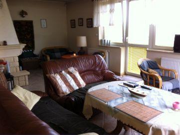– Przestronnego salonu na parterze z kominkiem, telewizorem (Cyfrowy Polsat) i wieżą Hi-Fi,