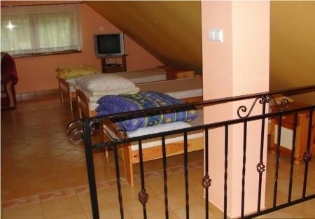 – Piętro: sypialnia z telewizją satelitarną i dostępem do internetu, zapewniająca komfort i rozrywkę.