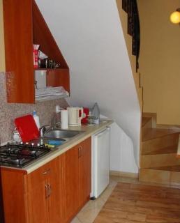 – Parter: łazienka oraz aneks kuchenny, w pełni wyposażony do samodzielnego przygotowywania posiłków.